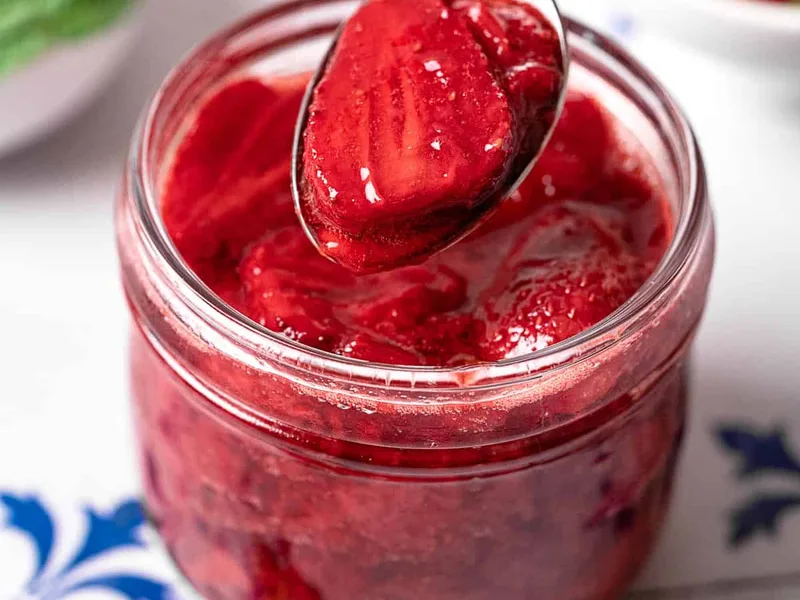 A fragrant compote that transforms fresh strawberries through gentle roasting, creating concentrated flavors enhanced by delicate rose water, golden honey, and bright mint. The oven-roasted method develops deeper sweetness while maintaining chunky texture, making it perfect for spooning over ice cream, pancakes, or Greek yogurt. The floral rose notes complement the strawberries without overwhelming, while fresh mint adds brightness. Ideal for spring and summer entertaining or everyday desserts with an elegant touch that sets this version apart from stovetop compotes.