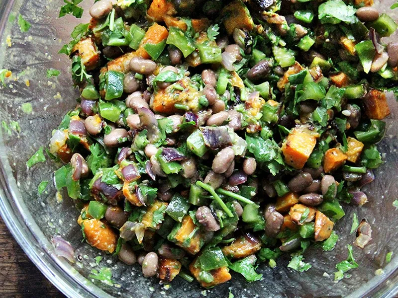 Roasted Sweet Potato Black Bean Salad with Spicy Lime Dressing