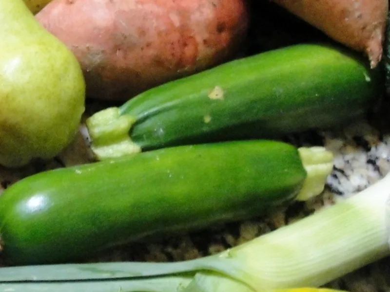 - 2 zucchini, peeled, sliced thin and quartered