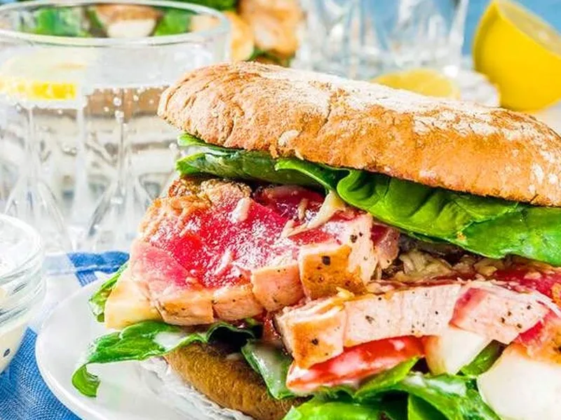 A sophisticated take on the classic burger, this fresh tuna version delivers restaurant-quality results at home. Ahi tuna steaks are seared rare to medium-rare, creating a tender, buttery center with a golden crust that contrasts beautifully with crisp lettuce and juicy tomato. The umami-rich miso mayo—combining fermented soy, warming ginger, and subtle honey sweetness—ties everything together without overpowering the delicate fish. Perfect for seafood lovers seeking a lighter, protein-packed alternative to beef, these burgers shine at summer entertaining or quick weeknight dinners. This version prioritizes the tuna's natural quality and brief cooking time, ensuring it stays moist and flavorful rather than overdone. Whether you're meal-prepping or impressing guests, seared tuna burgers offer elegance with minimal fuss.