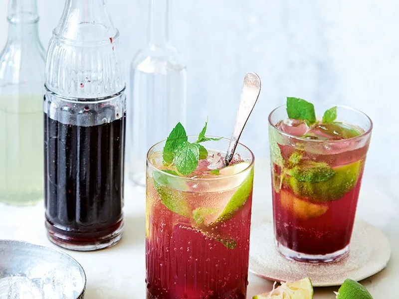Prepare blackcurrant sirop and chill glasses in advance, but assemble each drink to order. Ginger beer carbonation dissipates quickly once combined, compromising texture and freshness. You can batch the blackcurrant, lime, and mint mixture, then add gin, ice, and ginger beer individually.