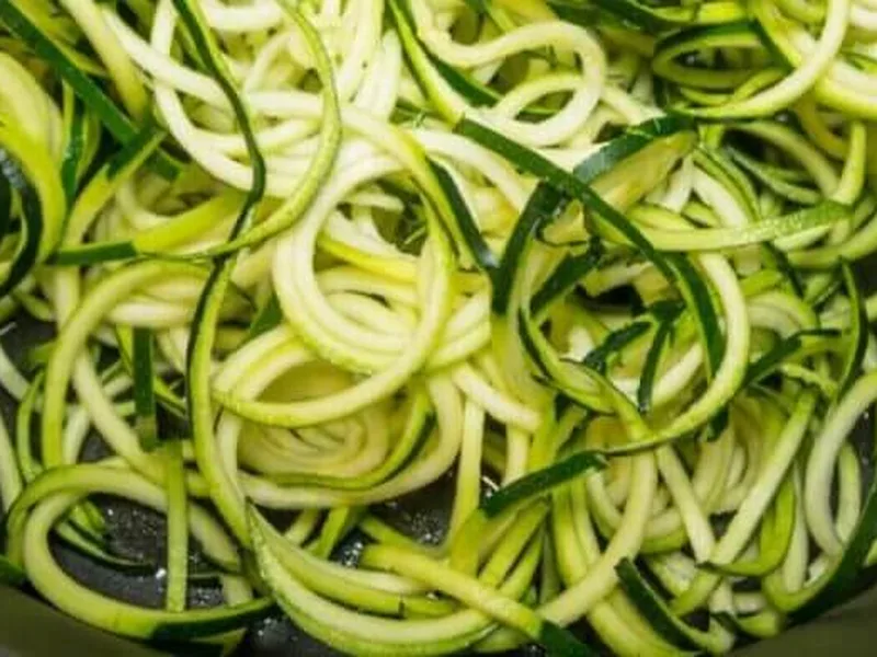 Peel the zucchini and create 1/8 inch noodles using a julienne peeler, spiralizer, or knife.