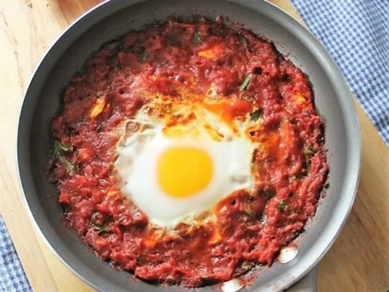 Shakshuka: Spiced Tomato Sauce with Poached Eggs