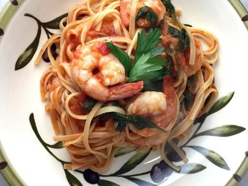 Restaurant-quality pasta featuring succulent shrimp tossed with tender spinach in a rich vodka cream sauce. The bright heat from red pepper flakes, subtle wine notes, and nutty Grana Padano create depth and complexity. Serve this elegant weeknight dinner or light entertaining dish with crusty bread and a crisp white wine. The vodka sauce delivers signature Italian-American comfort, by fresh spinach and quality proteins.