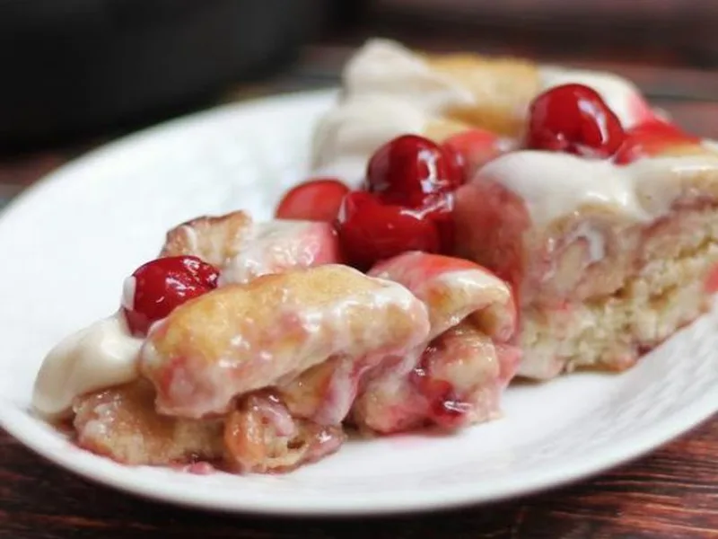 Skillet Cherry Sweet Roll with Cream Cheese Icing
