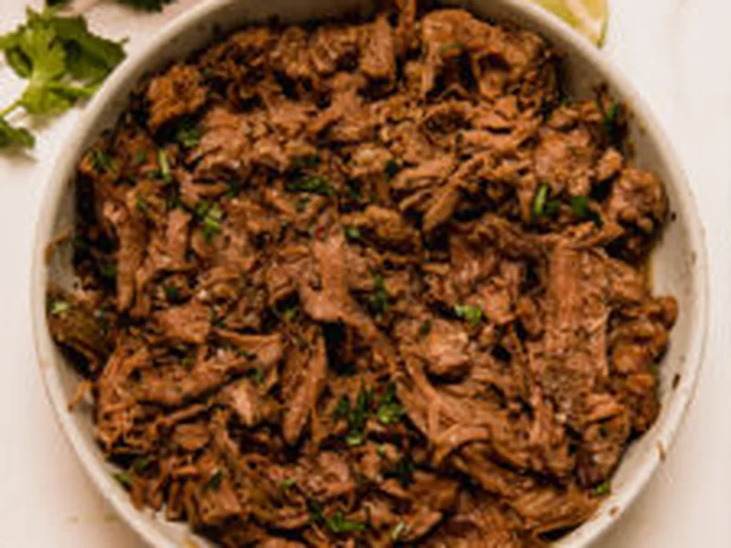 Shred the meat while still warm and allow it to rest in the braising liquid for 15 minutes. This helps the fibers absorb remaining liquid and prevents the barbacoa from drying out during storage or reheating.
