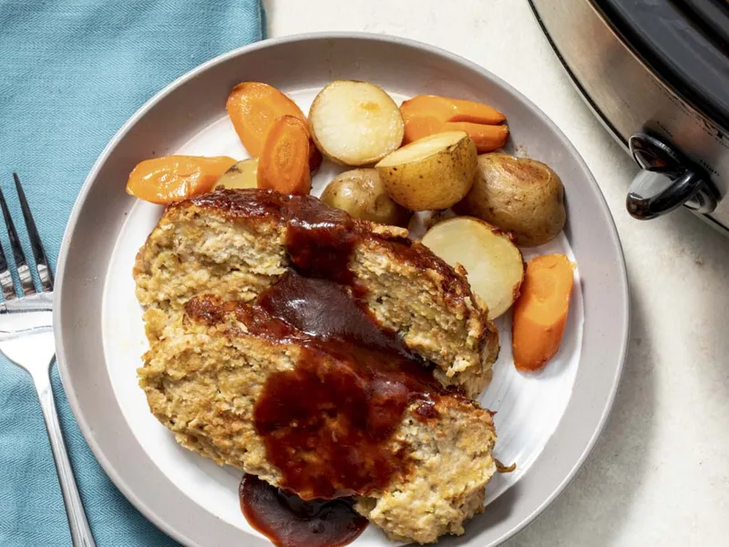 Slow Cooker BBQ Chicken Meatloaf with Root Vegetables