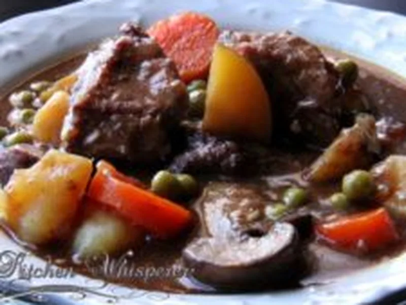 A classic French beef stew made effortless in the slow cooker. Tender chuck roast simmers for hours in burgundy wine and beef stock with potatoes, carrots, mushrooms, and pearl onions, finished with a silky wine-flour thickener and peas. Rich, deeply savory, and perfect for cool evenings when you want restaurant-quality comfort food without fuss. This version prioritizes browning the meat and deglazing the pan to build maximum flavor before the long braise.