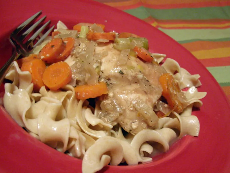 Rustic one-pot chicken stew made entirely in a slow cooker, combining tender chicken breasts with root vegetables, mushrooms, and aromatic herbs in a silky cream sauce. The recipe offers a from-scratch soup substitute using dry milk powder and cornstarch to avoid canned soup, though a convenient shortcut is provided. Herbes de Provence and dried thyme create authentic French country flavors. Ideal for weeknight dinners or meal prep, requiring minimal active cooking time. This version prioritizes texture contrast between vegetables and chicken while building depth through layering and a wine-cornstarch slurry finish.