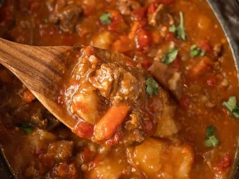 A hearty, warming beef stew built on tender chuck roast simmered low and slow with diced tomatoes and green chilis, roasted potatoes and carrots, and warm spices. The cornstarch slurry thickens the broth to rich consistency. Taco seasoning and cilantro add Tex-Mex flair. Serve for weeknight family dinners or casual gatherings; the long cook time makes it ideal for busy days. This version relies on a slow cooker for hands-off cooking and uses canned tomatoes with chilis for convenience and consistent flavor.