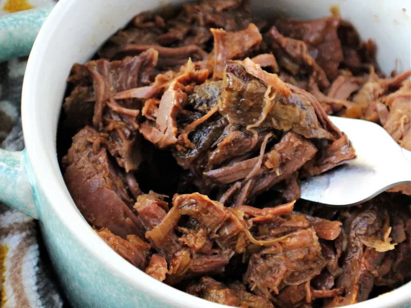 Cook on high for 5 hours or on low for 6-7 hours until meat shreds easily or reaches an internal temperature of at least 160F