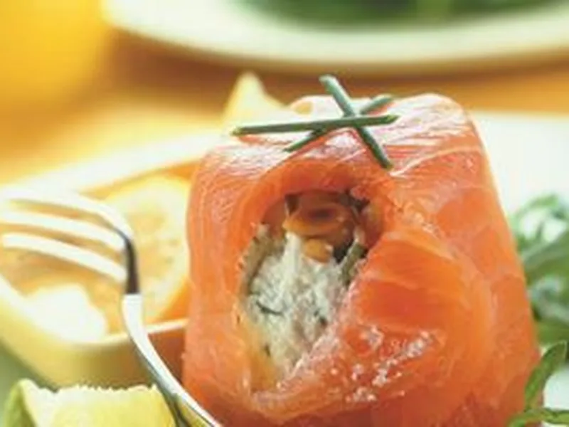 An elegant appetizer that showcases Scottish smoked salmon layered with herbed ricotta and toasted pine nuts. This no-cook dish combines silky, briny salmon with creamy, delicate ricotta enriched by fresh chives and garlic. The toasted pine nuts add textural contrast and subtle nuttiness. The presentation—salmon-lined ramekins inverted onto the plate—delivers restaurant-quality elegance without cooking skill required. Perfect for entertaining, dinner parties, or special occasions, it's sophisticated enough for guests yet simple enough to prepare ahead. What sets this version apart is the structural element of using salmon as both lining and topper, creating an impressive presentation while the chilled, set textures make for clean plating. Serve as a first course before light mains, or as part of a seafood-focused meal.