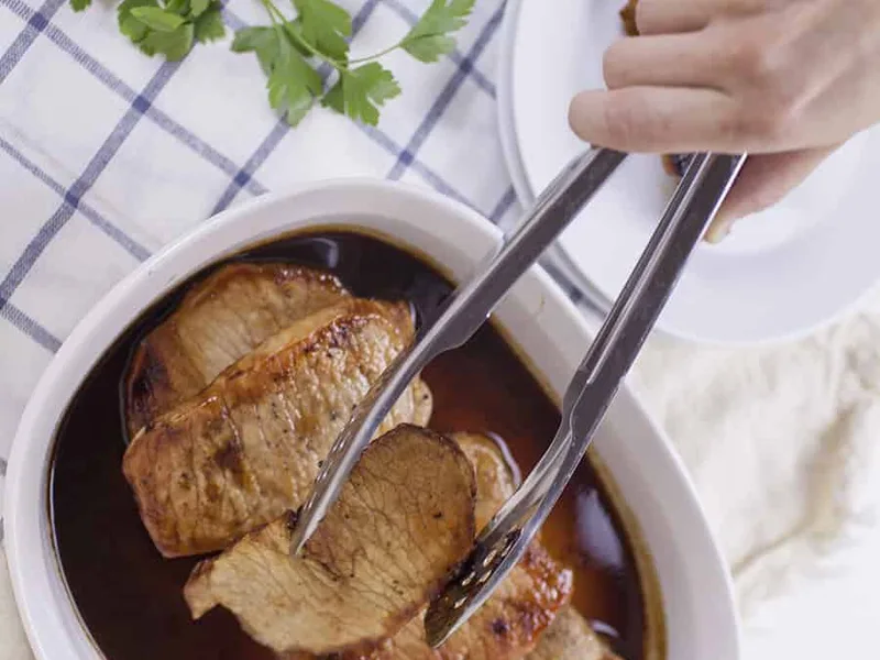 Serve hot with roasted root vegetables, steamed greens, or grain like rice or quinoa. Pairs well with apple slaw or mashed potatoes.