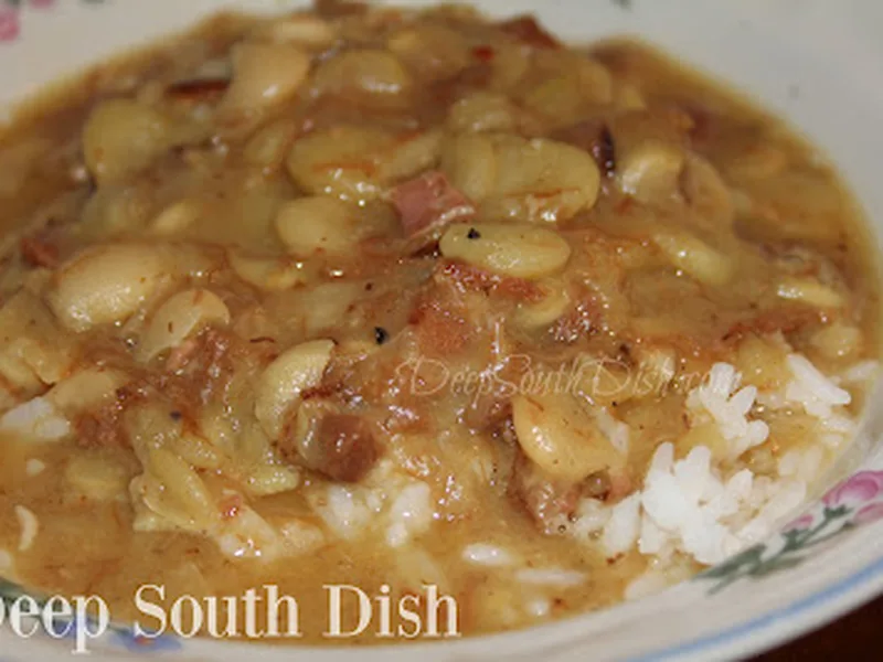 Tender green baby lima beans slow-simmered with crispy bacon, smoky ham, and pickled jalapenos in a savory broth. This Southern classic delivers deep, complex flavors from caramelized pork and aromatic alliums, with a gentle heat kick from jalapenos and pepper flakes. Serve as a comforting side dish alongside cornbread and greens, or ladle over rice for a hearty one-pot main. The extended soak and gentle simmer create creamy beans that absorb every bit of the rich, smoky broth.