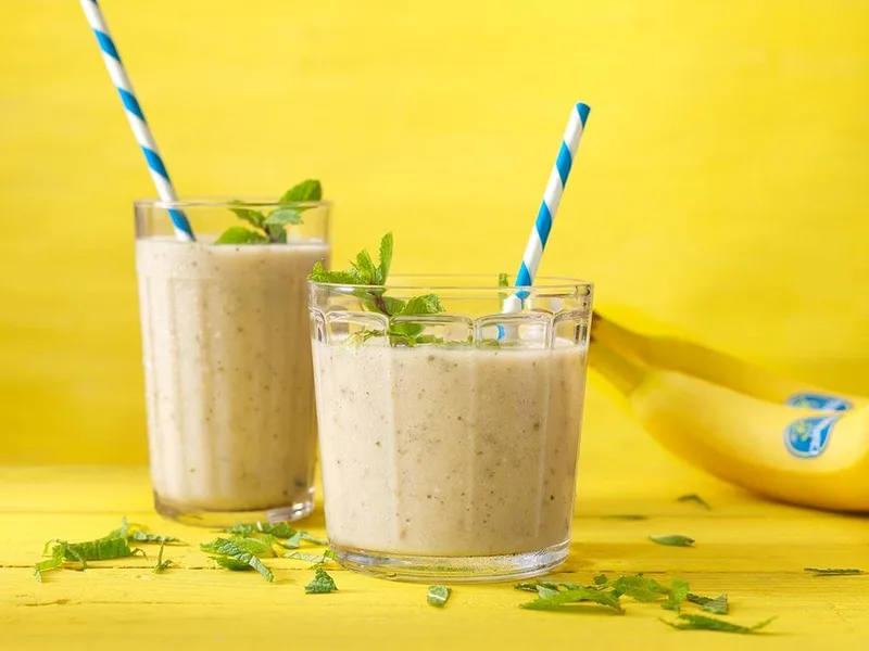 Refreshing blended drink combining fresh pineapple and banana with bright mint and lemon notes. Creamy oat milk base makes this dairy-free smoothie naturally sweet and smooth. Ready in minutes for a quick breakfast or snack.