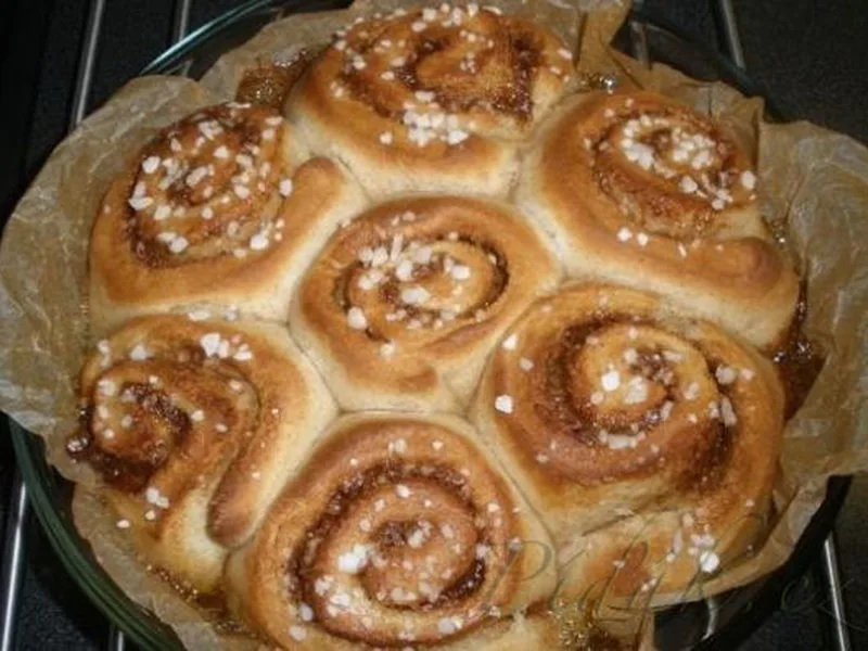 Soft, pillowy cinnamon buns made with a blend of spelt and all-purpose flour that adds subtle nuttiness while keeping the crumb tender. This Czech version, skořicové rolky, features a warm filling of butter, cinnamon, and cardamom topped with crunchy raw sugar. The dough rises twice—once after mixing, again after shaping—creating light, airy buns that pull apart easily. Make these for weekend breakfasts, holiday mornings, or whenever you want the aroma of cinnamon and yeast filling your kitchen. What sets this apart is the cardamom note beneath the cinnamon, the spelt's gentle earthiness, and the intentional spacing in the pan that lets steam circulate, preventing dense centers while edges crisp slightly. The coarse sugar topping adds textural contrast and catches during baking.