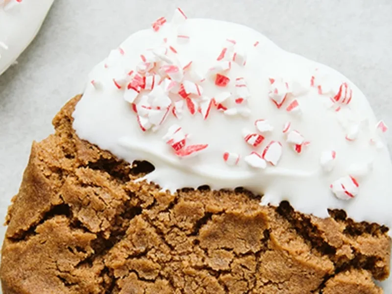 Chewy ginger molasses cookies combine warm spices with a crispy-edged, tender crumb. White chocolate coating and crushed peppermint candy add sweetness and brightness to balance the deep molasses and ginger heat. These are ideal for holiday baking, gift-giving, or afternoon tea. The version distinguishes itself through the combination of both brown and granulated sugar for texture, generous molasses for authentic flavor depth, and the peppermint-white chocolate finish that feels enhanced without requiring advanced technique. Ground ginger and cinnamon anchor the spice profile, while vanilla and room-temperature butter ensure a cohesive dough. Perfect for bakers seeking a familiar classic with a modern, festive twist.