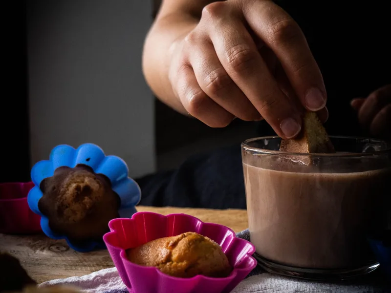 Magdalenas are Spain's beloved answer to muffins - tender, golden sponge cakes with a delicate crumb and subtle almond notes. This Valencian version uses almond milk and olive oil instead of butter, creating a lighter, more Mediterranean cake that stays moist for days. The egg foam creates an airy structure, while the crystal sugar topping adds a gentle crunch and sweetness. These are perfect for breakfast, afternoon tea, or dessert, and their individual portions make them ideal for lunchboxes and gatherings. What sets this recipe apart is the combination of olive oil's fruity character with almond milk's gentle flavor, plus the deliberate chilling step that ensures even crumb structure. The higher initial oven temperature followed by the baking temperature creates a subtle crust while keeping the interior tender.
