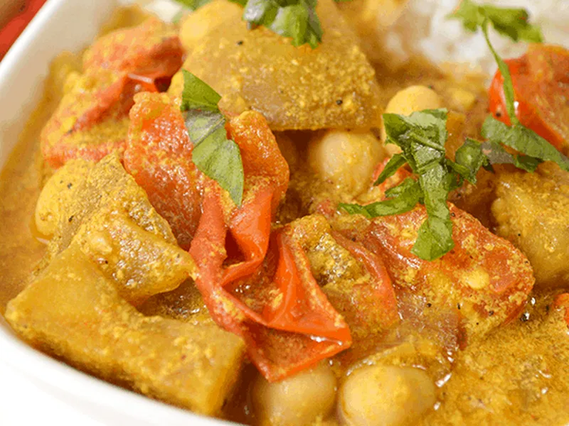 Spiced Eggplant Curry with Chickpeas and Tomatoes