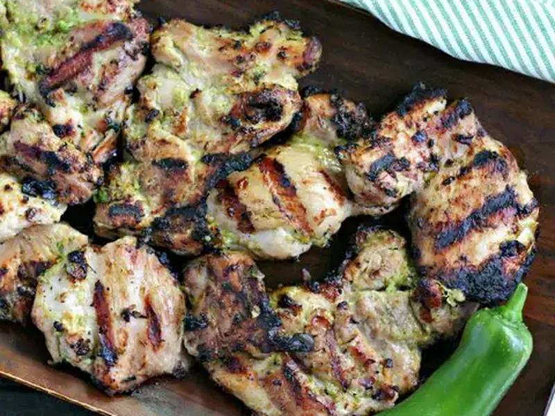 Fiery citrus and sesame marinade for grilled chicken thighs, built on fresh ginger, scallions, and jalapeno. Char the thighs over medium heat until caramelized outside and juicy within. The overnight soak deepens the spice profile and tenderizes the meat.
