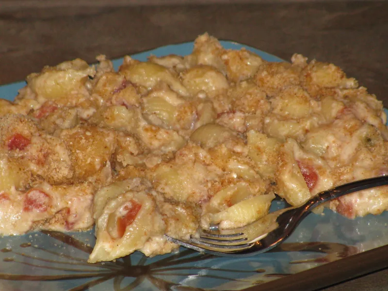 A bold twist on classic mac and cheese that layers creamy Monterey Jack and cheddar with a smoky tomato sauce spiked with jalapeños, cumin, and cayenne. Aromatic spices build depth while diced tomatoes add brightness and slight acidity. Topped with a golden Parmesan breadcrumb crust and baked until bubbling, this is comfort food with a kick. Serve as a main course for casual weeknight dinners or potlucks. What sets this version apart is the double-cheese base combined with the spiced tomato component, creating complexity beyond standard mac and cheese.