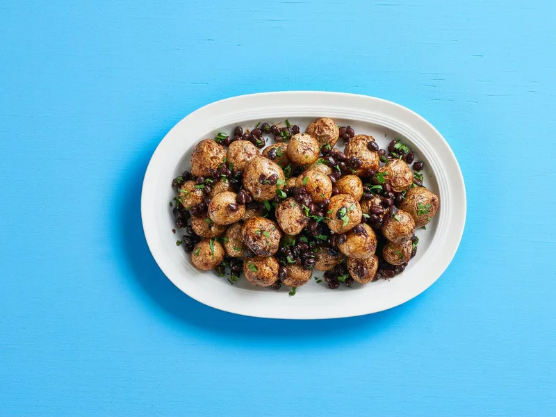 Crispy roasted baby potatoes tossed with peppery sambal oelek and earthy black beans, finished with fresh parsley. A simple vegetarian side dish that brings heat and depth to weeknight dinners or casual gatherings. The two-stage roasting ensures potatoes develop golden edges while beans warm through without breaking down.