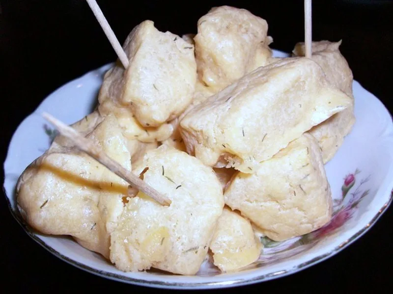 Crispy rye or pumpernickel bread cubes coated in a savory blend of cream cheese, sharp cheddar, and spiced butter, then lightened with beaten egg whites and baked until golden. The result is an airy, cheesy appetizer with subtle heat from Tabasco and complexity from Worcestershire and dill. Serve warm at cocktail parties, game day gatherings, or casual entertaining. This version stands out for its fluffy texture from folded egg whites and the choice of dark bread, which provides nutty depth against the sharp cheese filling.