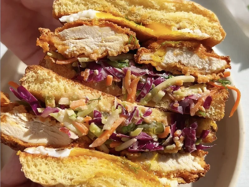 Spicy Chicken Egg Sandwich with Sriracha Slaw