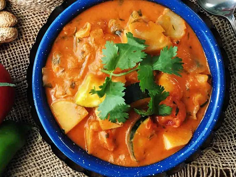 A vibrant, warming vegetable stew built on a rich spicy peanut sauce that delivers comfort without heaviness. This one-pot dish combines roasted aromatics with tender potatoes, zucchini, and cabbage simmered in a tomato-peanut broth spiked with jalapeño heat and fresh ginger. The natural peanut butter creates a creamy, nutty base that balances the tomato acidity and jalapeño fire. Perfect for weeknight dinners, meal prep, or feeding a crowd, it's inherently vegetarian and endlessly adaptable to whatever vegetables you have on hand. What sets this version apart is the emphasis on building flavor through proper aromatics sauteing before liquids go in, combined with the gentle final simmering that lets the peanut butter integrate smoothly without breaking. This is comfort food for anyone seeking substantial, satisfying meals that aren't meat-dependent.