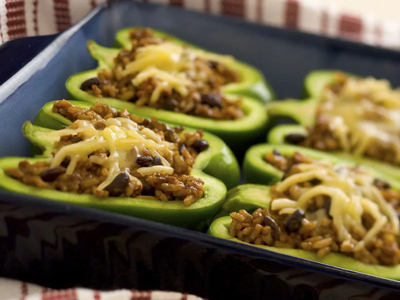 Assemble peppers up to 6 hours ahead, cover, and refrigerate before baking.