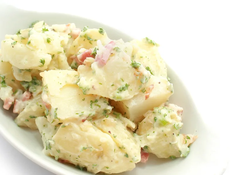 Do not overcook potatoes to avoid mushiness and loss of structure in the salad.