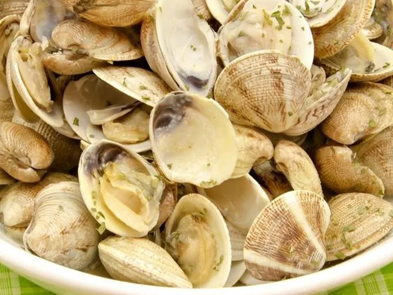 Fresh clams steamed in a fragrant broth of white wine, garlic, and olive oil create this classic seafood dish. The wine reduces to concentrate flavor while the clams release their natural brininess into the cooking liquid. Finished with butter and fresh parsley, this elegant preparation is perfect for a special dinner or entertaining. The key is using very fresh clams and discarding any that don't open during cooking for food safety.