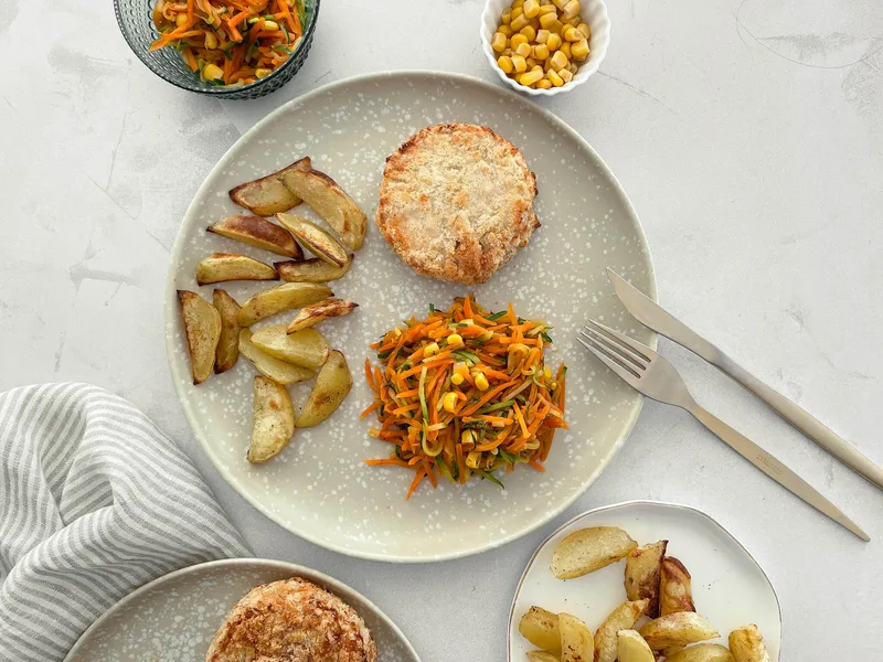 A light, vegetable-forward hot side dish that transforms simple produce into a vibrant accompaniment for protein. Shredded carrots and courgettes are gently stewed until tender, then combined with sweet corn, fresh dill, and tangy tomato sauce for a bright, herbaceous finish. This dish balances soft textures with vegetables that maintain their shape, making it ideal for weeknight dinners or meal prep. The minimal oil and lack of cream keep it naturally light while the fresh dill adds aromatic complexity. Perfect alongside grilled or pan-seared chicken, white fish, or salmon, it works equally well for health-conscious cooks and those seeking simple, honest flavors. This version prioritizes fresh herbs over heavy sauces, letting the natural sweetness of corn and earthiness of root vegetables shine through.