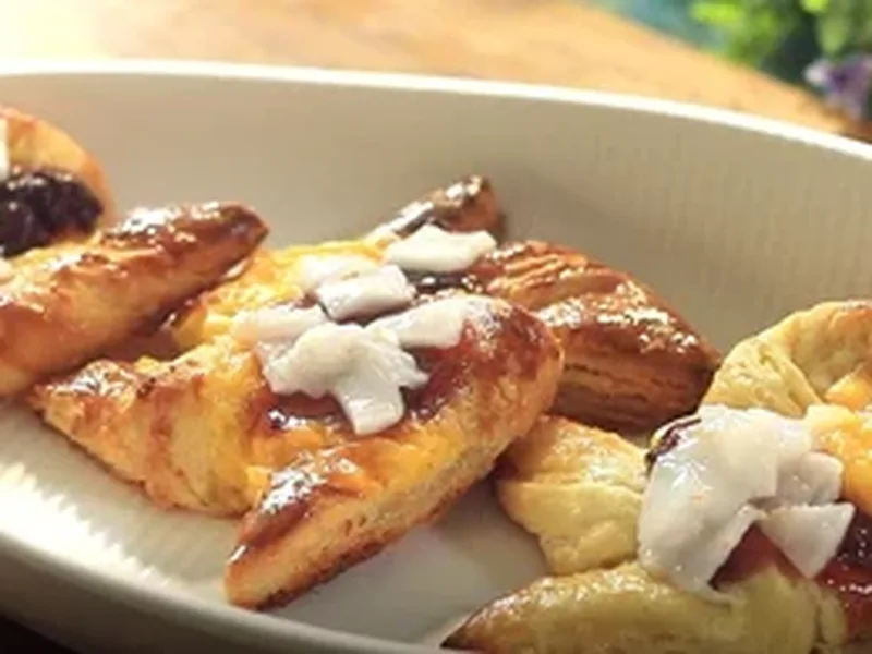 A showstopping Danish pastry that combines buttery, flaky laminated dough with creamy custard, tangy strawberry jam, and fresh tender coconut. The magic lies in the four-fold lamination technique, which creates distinct crispy layers that shatter when bitten. Key flavors balance sweet jam and smooth custard against coconut's subtle tropical notes, while textures range from crisp exterior to tender, pillowy interior. This recipe suits confident home bakers willing to master lamination and enjoy the meditative process of folding and chilling. Serve these as a showpiece breakfast pastry, elegant brunch centerpiece, or afternoon tea treat. What sets this version apart is the fresh tender coconut garnish, which adds authentic flavor and visual appeal beyond typical Danish variations.