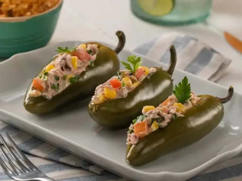 Mix your tuna filling at least 10 minutes before stuffing to let flavors meld. Chilled filling is easier to handle and holds its shape better inside the mild chiles. Taste and adjust salt and pepper after adding tuna, which often contains salt.