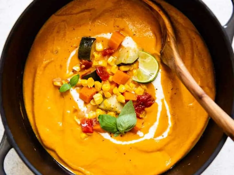 Summer Creamy Vegetable Soup with Coconut and Curry
