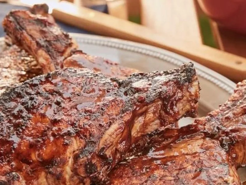 Center-cut pork chops brined in apple juice, cider vinegar, and butter for 30-45 minutes, then grilled over medium heat with BBQ sauce. The brine keeps the meat juicy while the sauce caramelizes on the exterior. A quick 5-minute rest ensures even carryover cooking. Serve alongside coleslaw for a backyard classic.