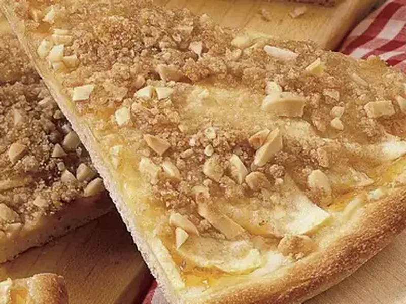 Sweet Apple Almond Dessert Pizza with Cream Cheese Base