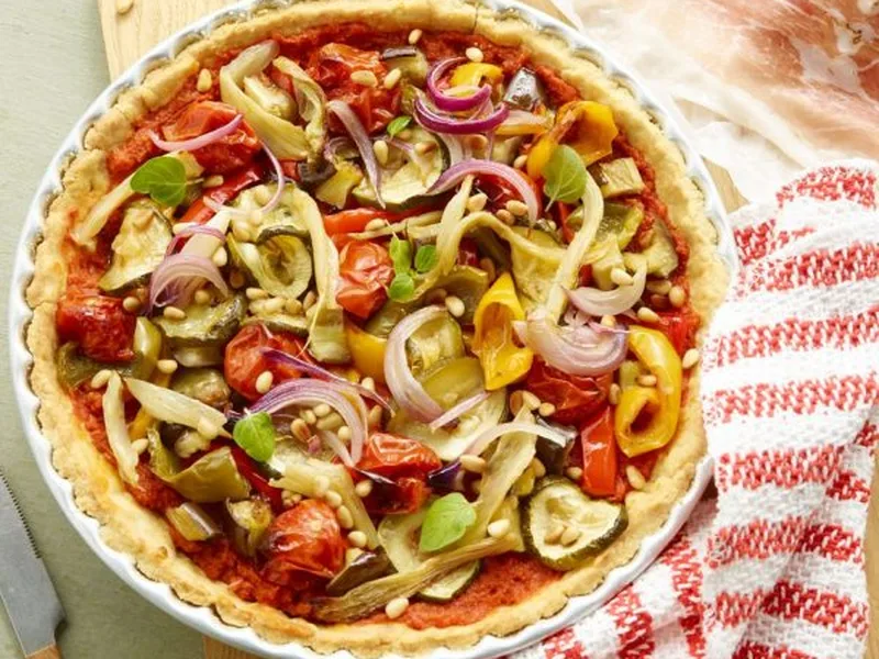 Grilled Vegetable Tart with Ham and Pine Nuts