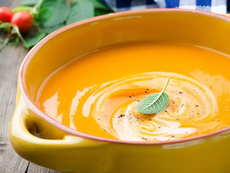 Creamy Pumpkin Soup with Roasted Vegetables