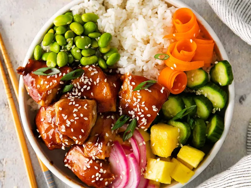 Teriyaki Chicken Poke Bowl with Spicy Mayo