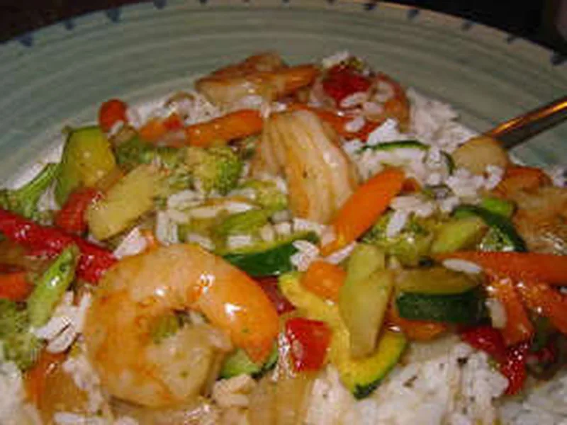 Succulent shrimp marinated in ginger and cayenne, combined with bell peppers, broccoli, carrots, and zucchini in a rich teriyaki-cornstarch glaze. Quick, weeknight-friendly Asian-inspired dish with bright flavors and satisfying textures. Perfect for busy families seeking restaurant-quality results at home. This version balances umami depth with fresh vegetable crunch, finished with sesame oil aromatics.