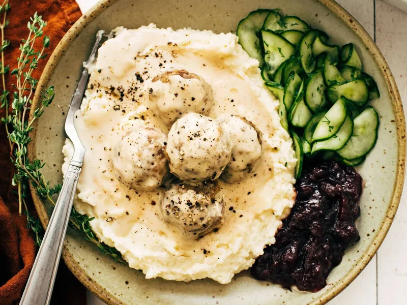 Tender beef and pork meatballs braised in a rich, creamy Worcestershire gravy. Bread soaked in heavy cream keeps them exceptionally moist. Quick oven-bake, then simmer in butter-flour sauce with beef broth and cream. Serve over mashed potatoes with cucumber salad and lingonberries for an authentic Swedish meal.