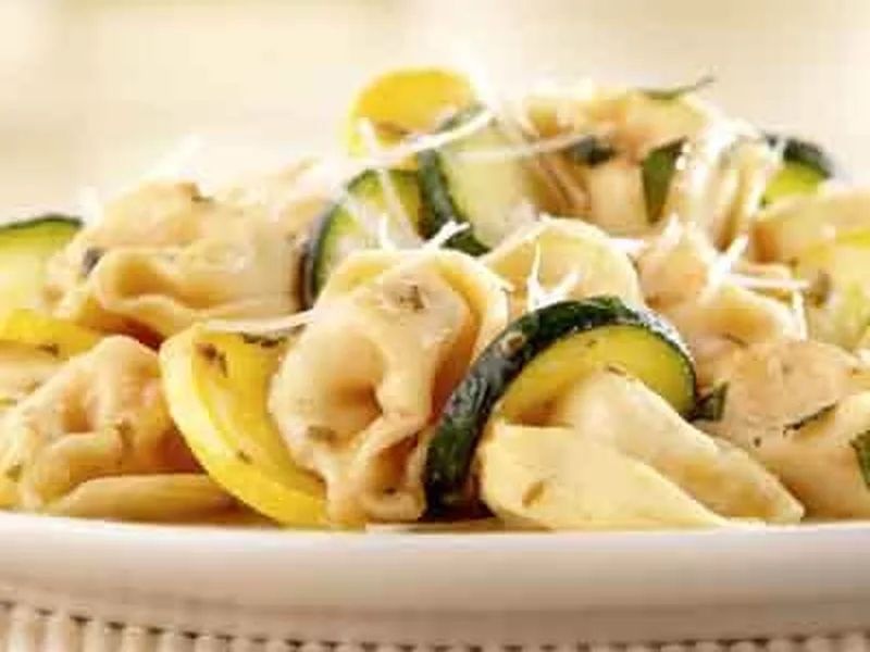 A light, buttery pasta dish that celebrates summer vegetables with minimal fuss. Refrigerated cheese tortellini serves as the base, combined with caramelized zucchini and yellow squash sautéed in butter with garlic and onion. The cheese tortellini provides richness while the vegetables add fresh, delicate sweetness and slight char from the pan. Parmesan and fresh basil brighten the finish. This dish suits weeknight dinners when you want restaurant-quality results in under 20 minutes. It's ideal for summer when squash is abundant and at peak flavor. What sets this version apart is the balance between the tender pasta, vegetables with crispy-tender texture, and the simplicity of the butter-based sauce that lets each ingredient shine without heavy cream or complex seasoning.