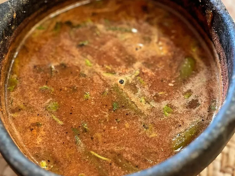 A light, strained tomato broth infused with ghee, black pepper, and cumin. This Karnataka-style saaru captures pure tomato essence with mild warmth from the tempering spices. Best made during peak tomato season for maximum flavor and juice yield.