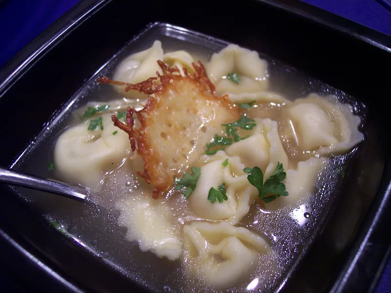 Freeze broth and cooked tortellini separately in freezer containers up to 3 months. Do not freeze Parmesan crisps. Thaw broth in refrigerator and reheat gently; cook fresh tortellini to serve.