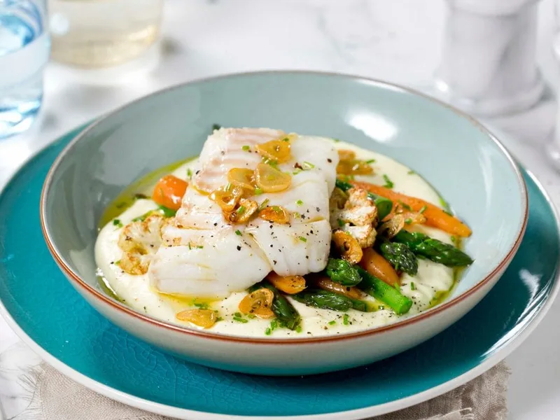 Pan-Seared Salt-Cured Cod with Potato Cream