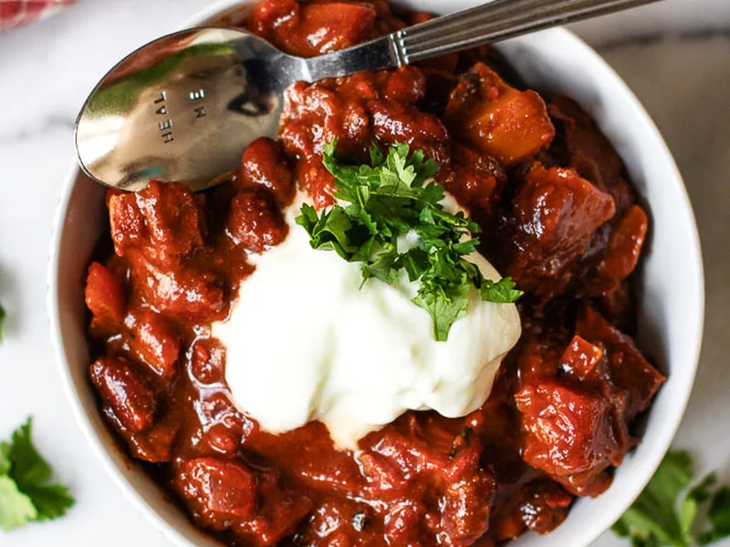 Ladle into bowls with generous toppings. Serve alongside cornbread, rice, or crusty bread to balance heat and absorb excess liquid. Pairs well with simple green salad or roasted vegetables.
