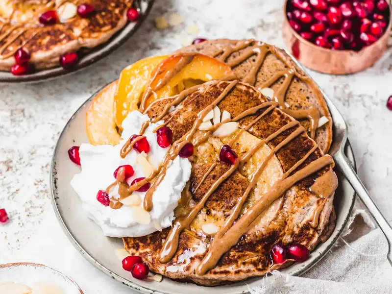 30-Minute Vegan Caramel Apple Pancakes