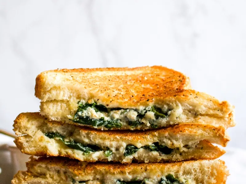 Vegan Feta Spinach Grilled Cheese, Crispy & Melty